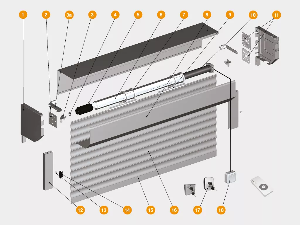 Короб в сборе. Представляет собой собранный защитный короб с боковыми крышками, валом и капсулами, механизмом управления.